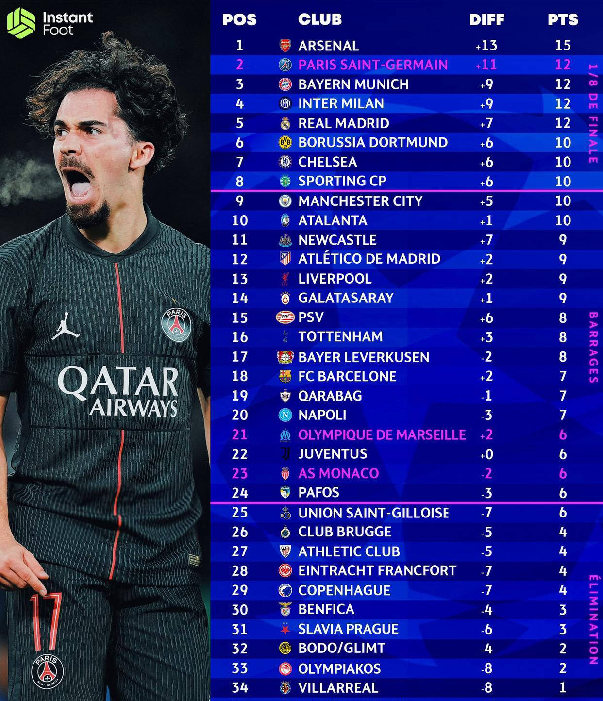 随着欧冠小组赛赛程过半,各支参赛球队的晋级前景逐渐明朗。对于西甲球队而言,整体情况各有不同但均充满变数。皇家马德里凭借近期连胜稳坐积分榜第四名,积12分,距离领头羊阿森纳仅差3分,依然保持冲击小组前两的位置,以期获得淘汰赛阶段的全程主场优势。巴塞罗那与马德里竞技在五轮战罢后仍保留冲击16强的可能,但需要接下来全力拿分;至于毕尔巴鄂竞技和比利亚雷亚尔,尽管目前形势较为艰难,但终止“无望状态”的希望仍未完全破灭。